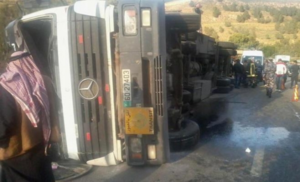 تدهور تريلا على نزول العدسية ومحاولة فتح الطريق