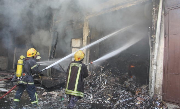 اخماد حريق ضخم في مستودع للادوات الصحية في اربد