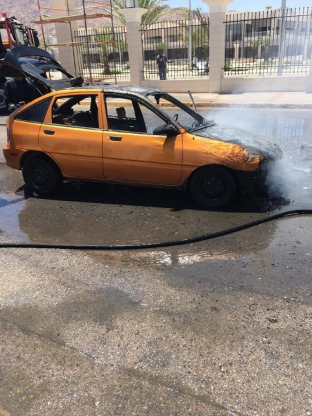 بالصورة ...اخماد سيارة احترقت في العقبة