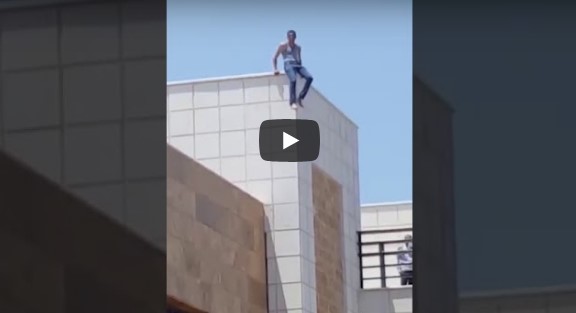 بالفيديو .. شاب يحاول الانتحار من اعلى عمارة بإربد !