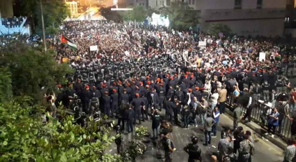 بالصور ... ما يقوم به رجال الامن العام مع المحتجين امام مجمع النقابات