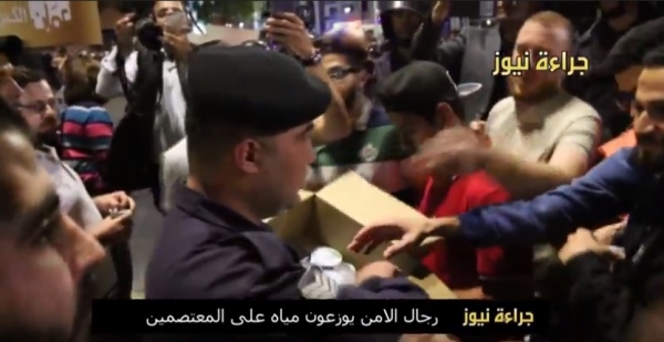 بالفيديو...رجال الأمن يوزعون مياه على المعتصمين على الدوار الرابع