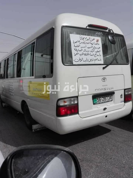 عمل اليوم مجانا عن روح اسد القلعة شعار طرز به أحد الباصات زجاجه