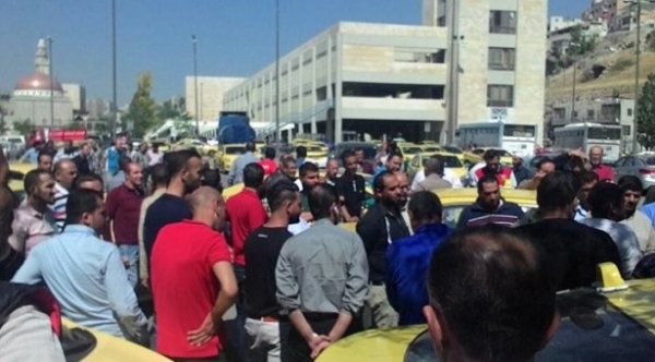 اصحاب وسائقو التكسي الاصفر يعتصمون في اربد