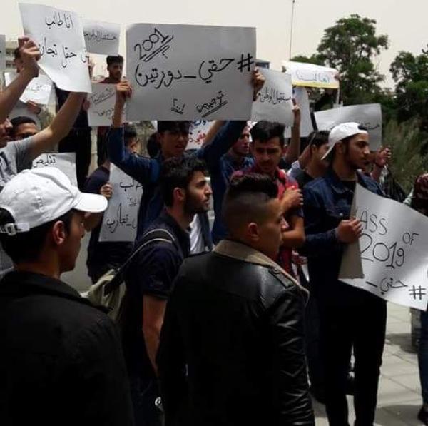 لهذا السبب يعتصم طلاب الاول ثانوي امام وزارة التربية
