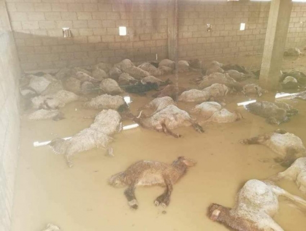 نفوق مائة رأس من الاغنام نتيجة لمداهمة مياه الامطار لحظيرة في الزعتري