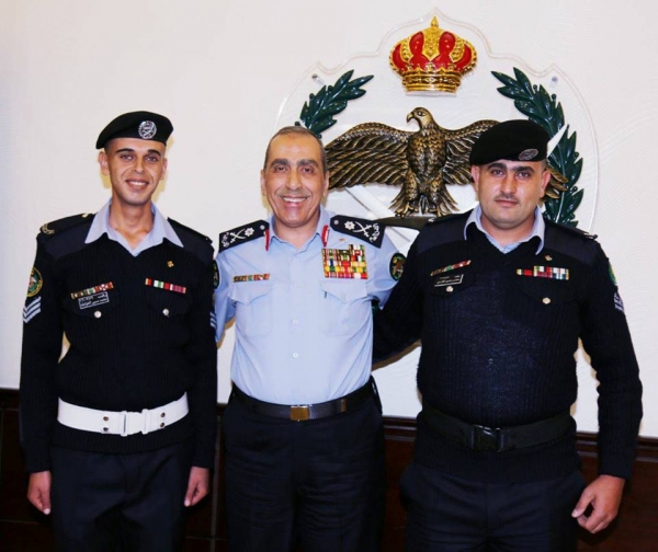 الحمود يكرم رجلي الامن العام انقذا احد المواطنين حاصرته المياه اثناء المنخفض الجوي في الرمثا .