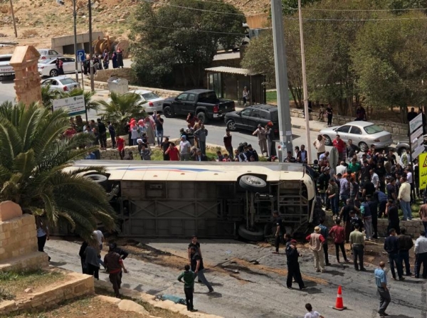 وفيات وعشرات اصابات بتدهور حافلة سياحية في البتراء