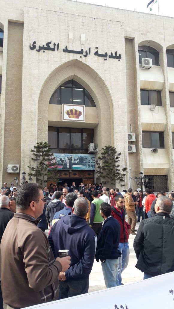 موظفو بلدية اربد يعتصمون للمطالبة بتحقيق مطالب وظيفية ومعيشية