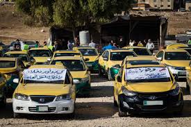سائقو التكسي الاصفر يجددون اعتصامهم امام وزارة النقل