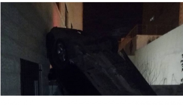 سقوط مركبة بفناء بناية سكنية في عمان