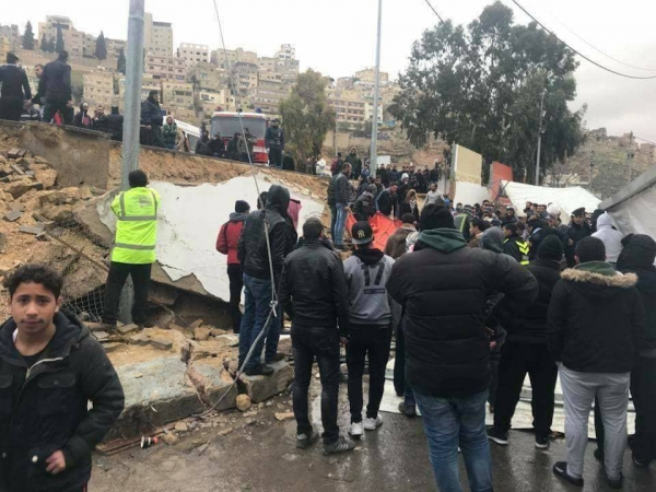 انهيار سور ضخم في رأس العين ووفاة واصابات