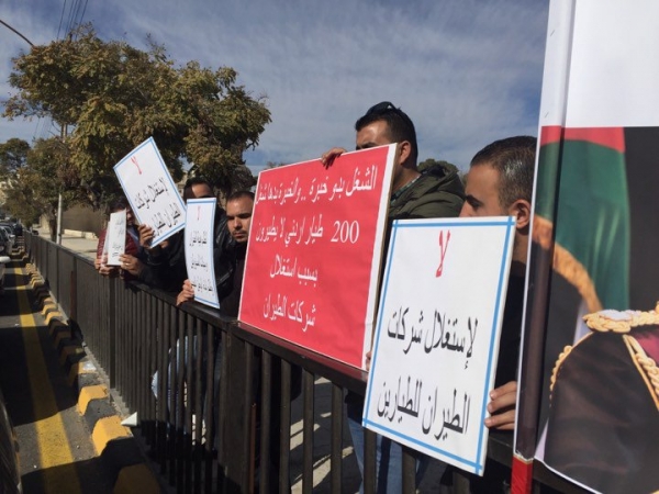 مجموعة من الطيارين العاطلين يعتصمون امام مجلس النواب