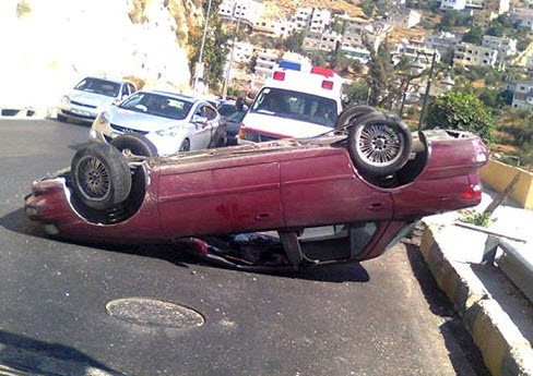 حادث انزلاق مركبة يتسبب بسبع اصابات في ناعور