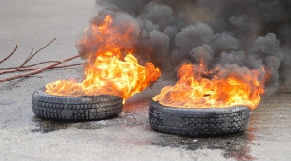 العشرات يتجمعون وبشعلون الاطارات في صناعية بيادر وادي السير وهذا ما يطلبونه