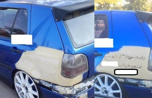 بالصور ضبط مركبة في عمان كتب سائقها عليها عبارات خادشة للحياء العام