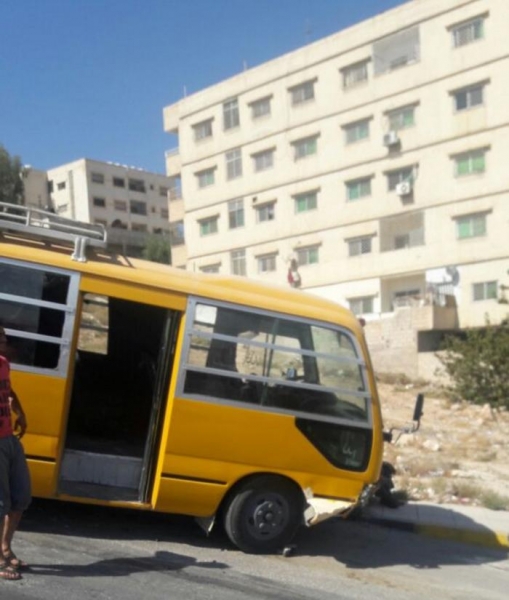 باص مدرسة يسير عكس السير ويتسب في حادث في الزرقاء