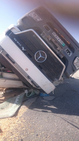 انقلاب شاحنة محملة على الطريق الصحراوي