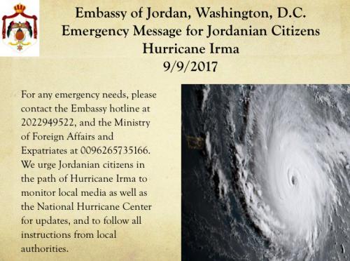 بيان يهم الاردنيين من السفارة الاردنية في واشنطن بخصوص اعصار ايرما