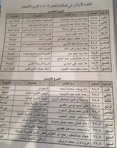 الرزاز يعلن اسماء الاوائل بامتحان الثانوية العامة