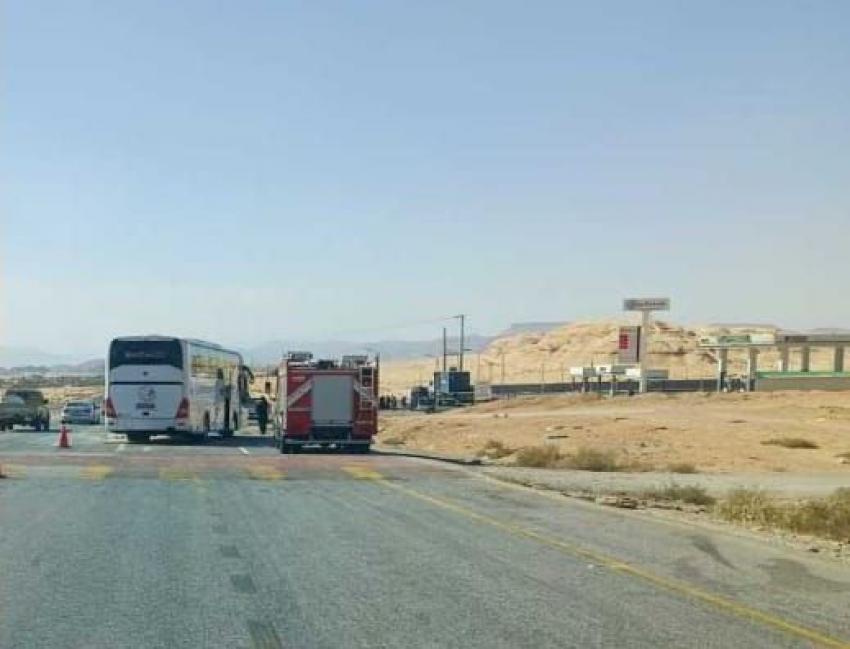 الطريق الصحراوي 21 إصابة بتصادم حافلة وشاحنة