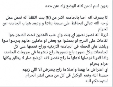 رسالة أرعبت طالبات الجامعات في الأردن - صورة