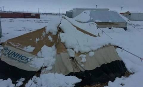 ثلوج بالزعتري.. وإخلاء 3 عائلات انهارت خيمها