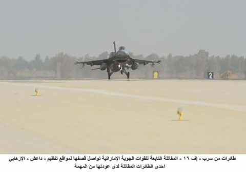 شاهد بالصور...سرب "اف 16" الاماراتي يقصف أهدافا لـ"داعش" من القواعد الأردنية