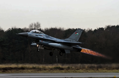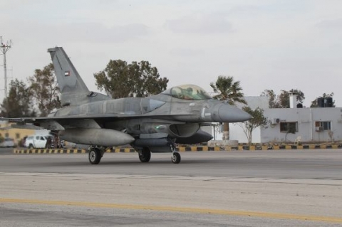 صور : وصول سرب الطائرات المقاتلة "F16" الاماراتية الى الاردن