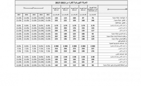 (بالجدول) تفاصيل زيادة التعرفة الكهربائية المطبقة في 2015
