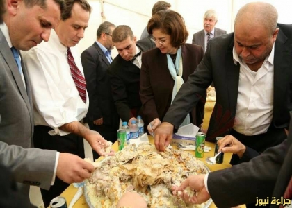 جدل واسع بعد نشر صورة للسفير الأمريكي يتناول "المنسف" بمنزل الحراكي العبداللات