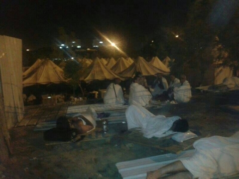 بالصور..الحجاج الأردنيون ينامون في العراء دون انارة!!