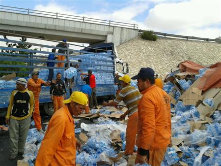 بالصور.. انقلاب شاحنة محملة بالمياه على ''تاكسي''!!
