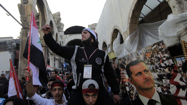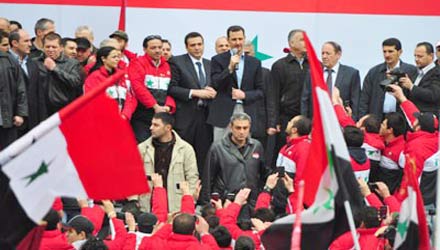 الرئيس السوري بشار الأسد يخرج الى الشارع ويخاطب المتظاهرين في قلب دمشق