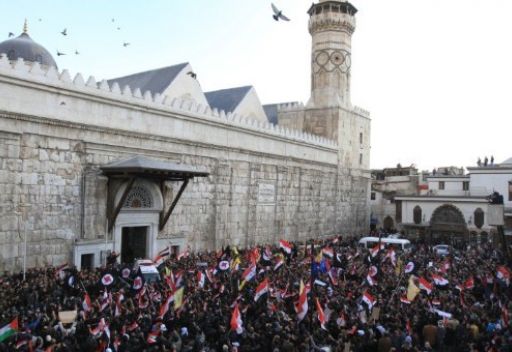 تشييع 44 عسكريا ومدنيا من الجامع الاموي في دمشق وسط موكب شعبي ورسمي مهيب