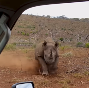 بالفيديو .. امرأة "تتحدى" وحيد القرن .. وهذا ما حصل لها