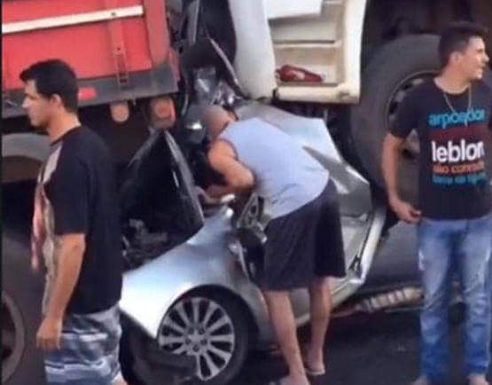 نجاة سائق علق بسيارته أسفل شاحنتين -فيديو
