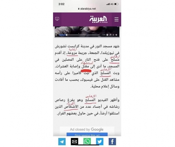 انتقادات لاذعة لتغطية قناة العربية لهجوم نيوزيلندا الإرهابي