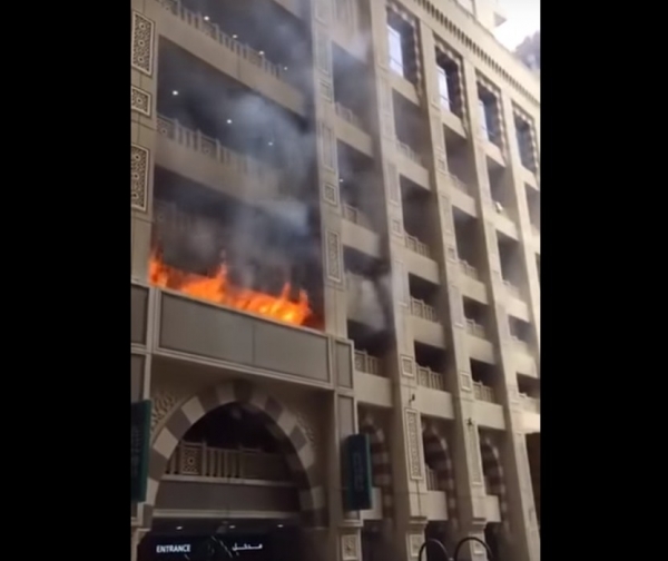 شاهد بالفيديو ... حريق ضخم في أبراج مكة