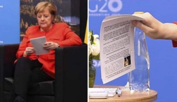 بالجرم المشهود.. الكاميرات تفضح ميركل باجتماع رسمي