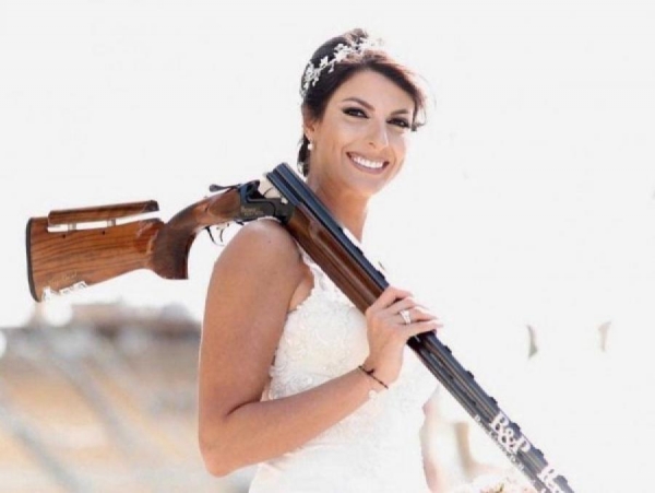 عروس لبنانية تحمل بندقية على كتفها مع الفستان الابيض
