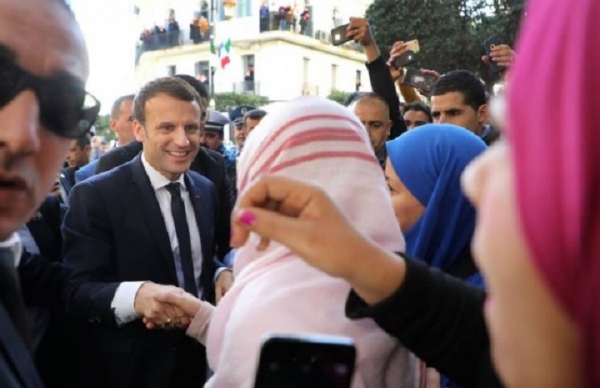 بالفيديو .. فتاة عربية تطلب من الرئيس الفرنسي طلباً غريباً .. ويرد بتقبيلها