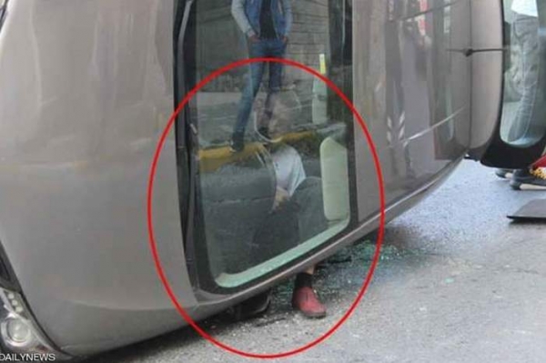 رجل يعلق في وضعية غريبة بعد حادث مروري.. والصورة تثير الدهشة