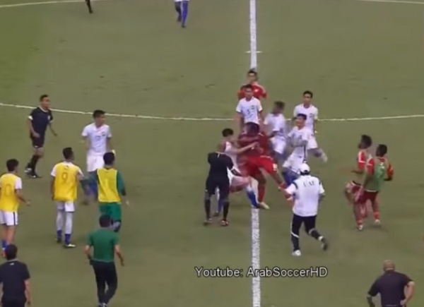بالفيديو .. شاهد : شجار عنيف و ركلات و ضرب مبرح بين لاعبي منتخبي الامارات و ماليزيا