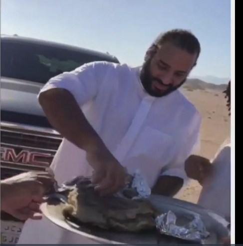 فيديو .. محمد بن سلمان يشارك شبان تناول الطعام