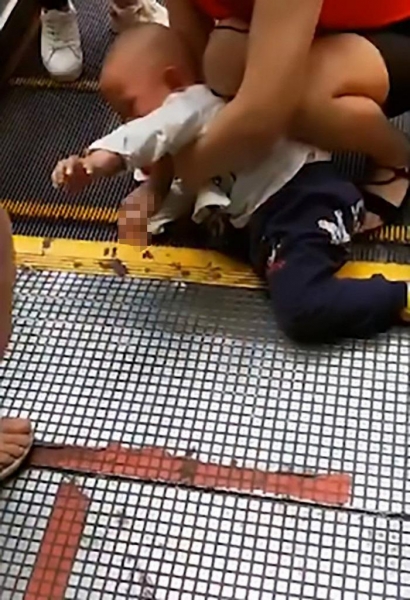 لقطات صادمة .. سلم كهربائي يبتلع يد طفل
