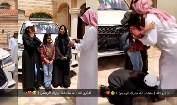 بالفيديو .. أب سعودي يُهدي بناته الـ3 سيارة جيب لكزس