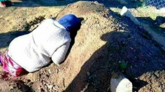صورة مؤثرة أبكت العالم.. أم منهارة على قبر ابنها تبكي فقدانه بحرقة