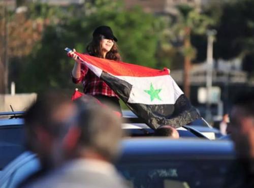 بالفيديو والصور ..السوريون في دمشق يحتفلون بتدى الدفاعات الجوية للصواريخ الغربية