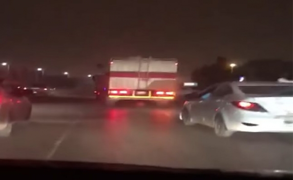 بالفيديو...سائق شاحنة في حالة غير طبيعية يقود بتهور ويصدم عدداً من السيارات بالرياض
